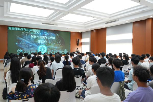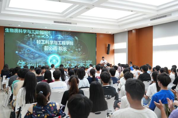 2024级生物质科学与工程创新班开班仪式隆重举行发表时间:2025-07-14 16:33 2025年7月14日下午,2024级生物质科学与工程创新班开班仪式在皮革楼工业互联网演播厅隆重举行。参加此次开班仪式的有学院党委李天富书记、姜新副书记、院长彭必雨教授、副院长陈意教授、迟原龙教授、学院工会主席陈胜副教授,以及生物质与皮革工程系系主任林炜教授、副系主任程海明教授、服装与服饰设计系系主任杨璐铭教授,还有创新班导师、班主任及全体2024级创新班学生。开班仪式由姜新副书记主持。