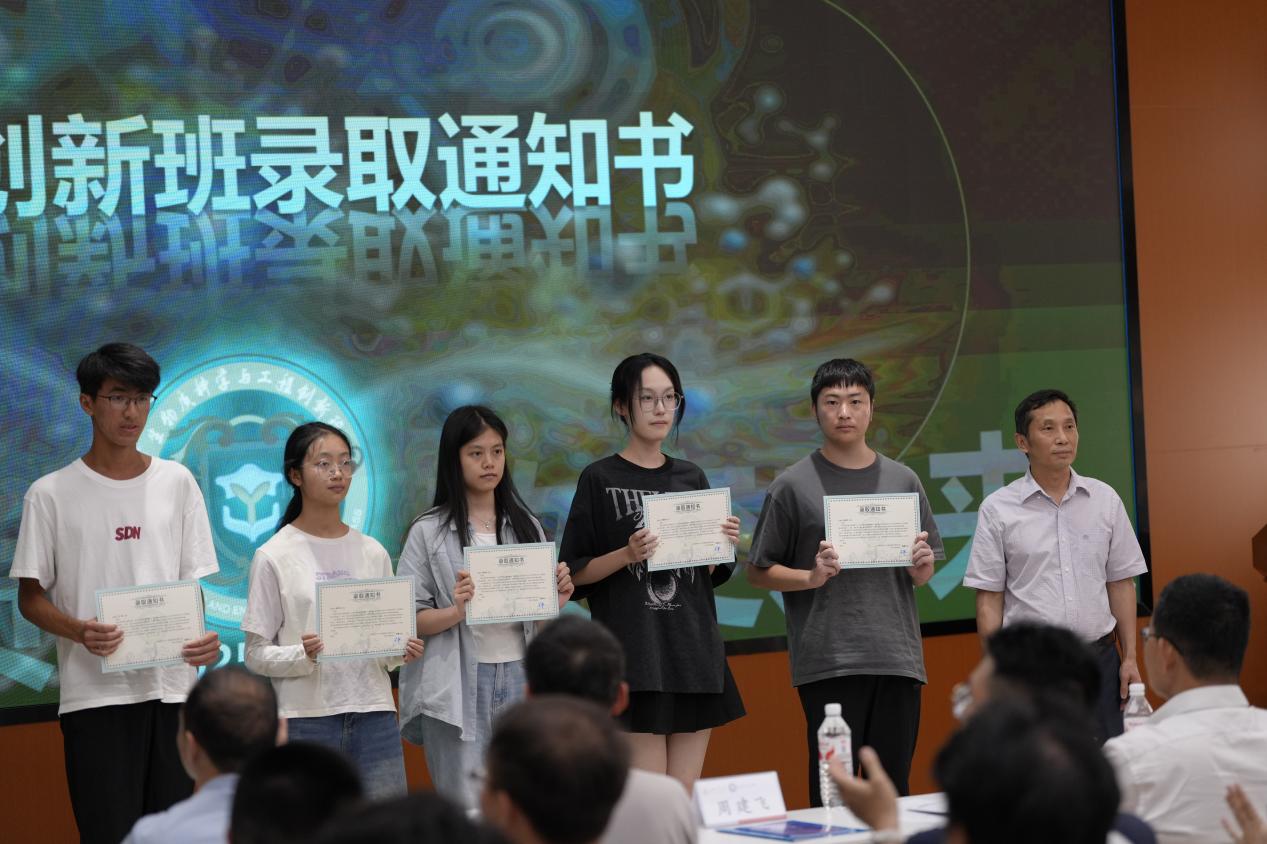 (2023级创新班优秀学生代表发言) 接下来,李天富书记、彭必雨院长、陈意副院长、杨璐铭主任、陈胜副教授为同学们颁发了创新班录取通知书,李天富书记为创新班班主任郑婉、陈一宁颁发了聘书。